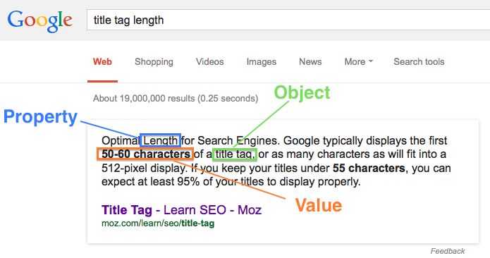 Google is able to extract the semantic meaning from this page even though the properties of "length" and its value of 50-60 characters are not structured using classic schema.org markup.