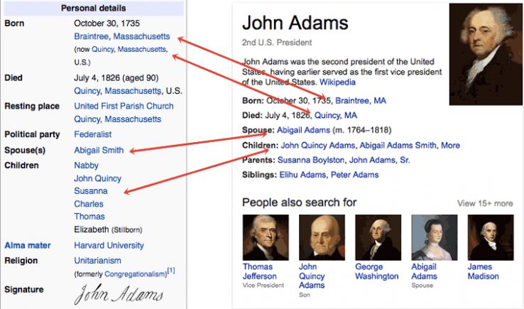 In the example below, the technology exists for search engines to easily extract structured relationship about US president John Adams in this Wikipedia table.