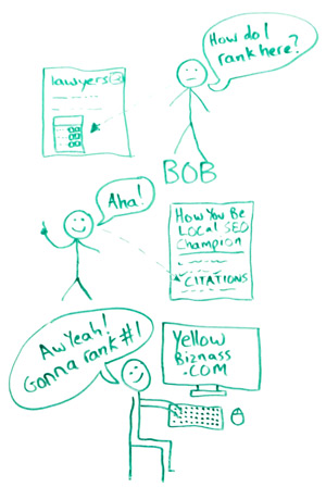 So he does a little research. He comes across an article on how to rank in local SEO. He reads about citations and how that can help with his local rankings. The article suggests that he uses the local citation finder to research his competitors and find citation opportunities. So he's done that. He's got his list, and he's off to submit his business to all the various directories.