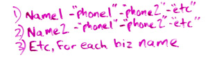 At the end of this process, you should have a very nice, clean list of all of your various names, addresses, and phone numbers for the business.