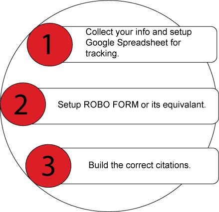 Now you are setup to start finding citations and knocking them out! We will use Roboform to auto fill the fields instead of typing them each time. They will still require manual review but it will save a lot of time!