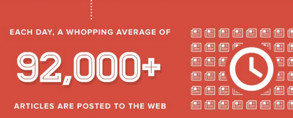 Posting new, unique content regularly on your site is NOT enough. Each day there are around 92,000 new articles posted on the internet. Digital media publishers have created systems to produce the greatest amount of content at the lowest price. For example, The Huffington Post produces at least 1,200 pieces of content a day, and Forbes produces 400 (with 1,000 contributors). It's not just from publishers; WordPress users produce about 35.8 million new posts each month.
