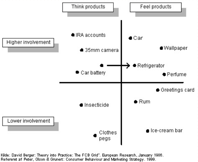 If the product the company sells is a "low involvement"/"feel" product, more time should be invested to connecting with consumers and appealing to their emotions. These products should also focus their efforts on building brand loyalty and retention of customers because these products tend to be repeat purchases.