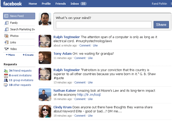 My Facebook feedback loop shows me lots of new friend requests, event invitations, group invitations, status updates from my network and images where people have tagged me.