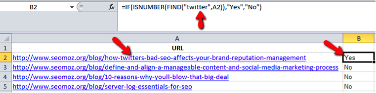 =if(isnumber(find("filtertext",A1)),"Yes","No")