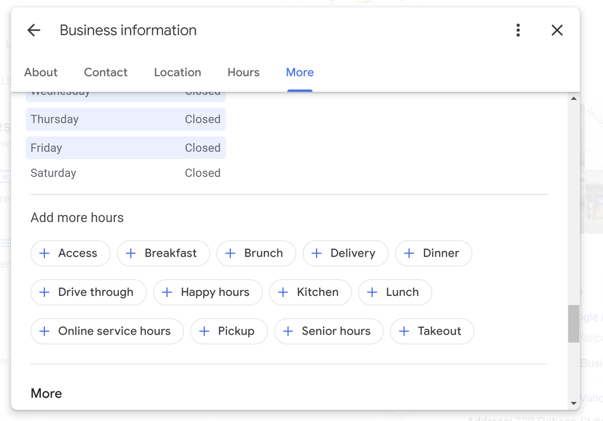 Controllable? Partly — businesses can add a great many attributes by clicking the “Business Information” tab in the NMX and then going to the “More” section. However, Google also crowdsources attributes from the public.