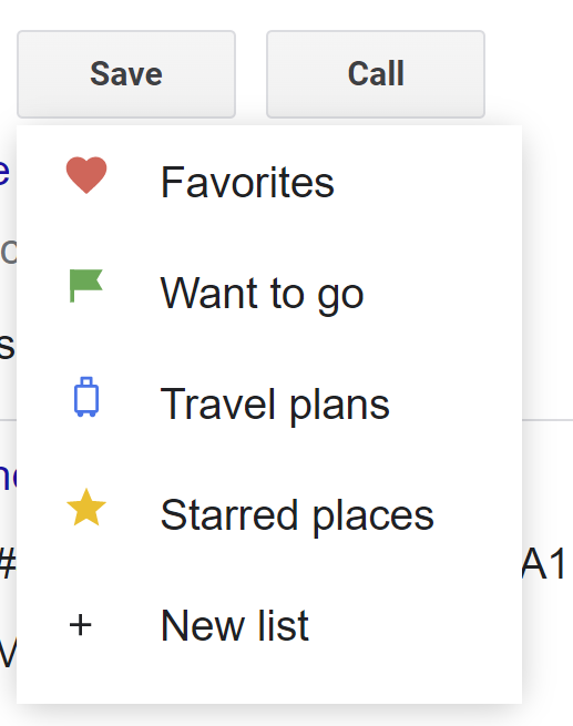 When a user is logged into their Google account, clicking the “Save” button brings up the above pop-up, enabling them to store the business in their favorites or other areas like places they want to go or are planning to travel to.