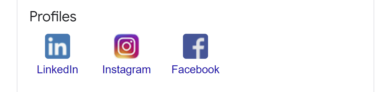 Google business profiles can feature icon-based links to major social media sites where the company has established a presence.
