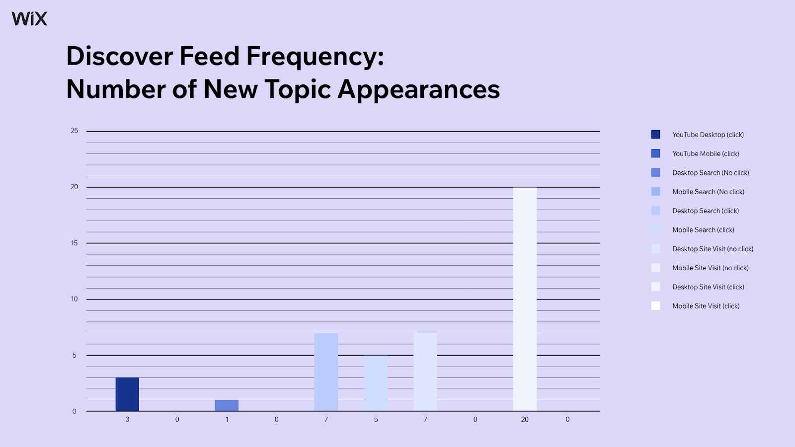 As I mentioned, I wanted to see the impact of the various online behaviors on my Discover Feed. That is, how frequently did Google insert content related to the topics associated with each specific behavior into my feed?