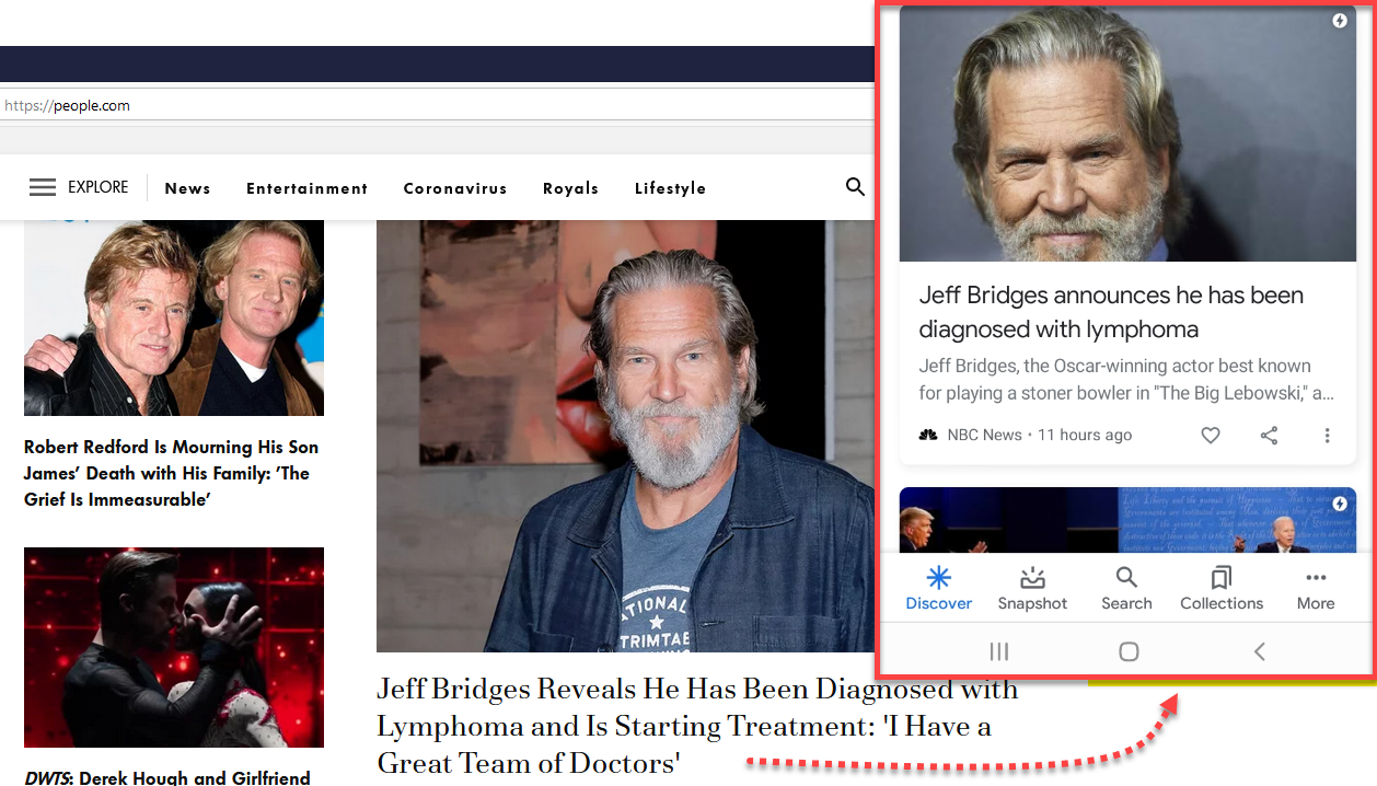 Despite never clicking on an article when visiting people.com each day, Google still flirted with showing celebrity news content in my Discover Feed.