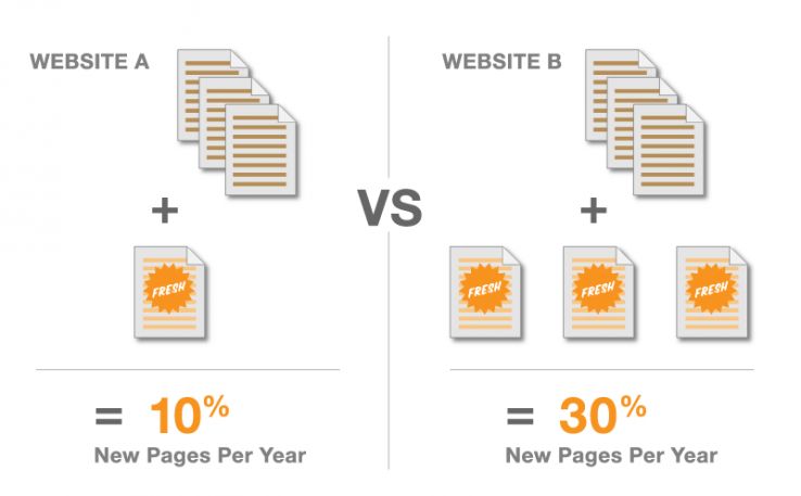 Instead of revising individual pages, fresh websites often add completely new pages over time. (This is the case with most blogs.) Websites that add new pages at a higher rate may earn a higher freshness score than sites that add content less frequently.