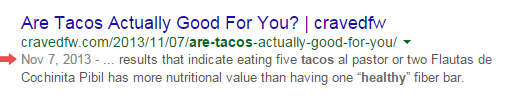 Sometimes, Google will algorithmically add information to a snippet. One of the most common examples is a date-stamp added to news and blog results. These add-ons appear at the beginning of the snippet.