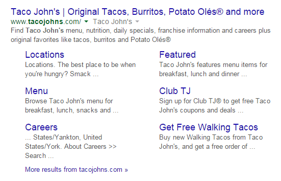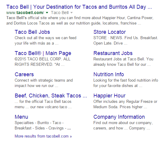 For internal links or on-page anchors, Google will occasionally display mini-sitelinks directly to those pages/anchors. These sitelinks occupy a single row below the result snippet.