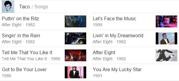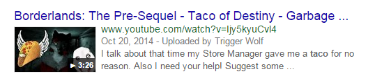 Googles "Mega-Video" format promotes a single video to a prominent card-like result, with a very large thumbnail and song/artist data. Mega-Videos are dominated by YouTube and the Vevo music video network.