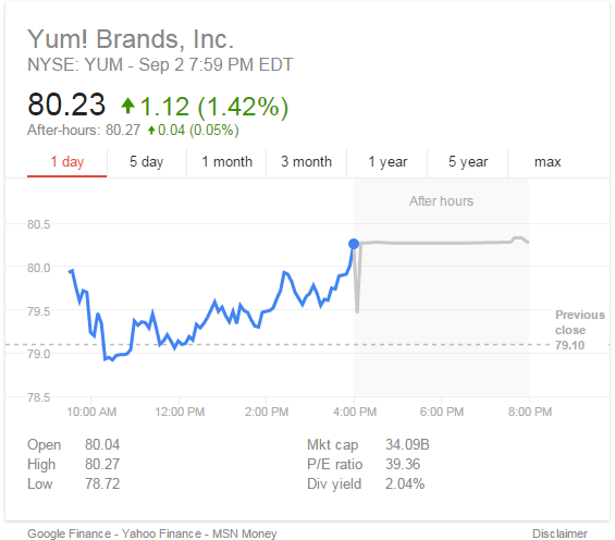 Financial information for many ticker symbols is also available via live results. Nearly real-time results (including after-hours trades) are available from major financial news sources, along with graphs over multiple time windows.