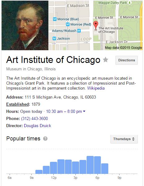 Often tied with Authoritative One-boxes, Local Knowledge Panels display rich information about a local business, including address, phone, hours, reviews, and, most recently, a graph of when you should expect a crowd.