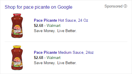 For a smaller product count, paid shopping in the right-hand column may also be displayed as one product per row. The functionality is similar, but this allows for additional space and a line of ad copy.