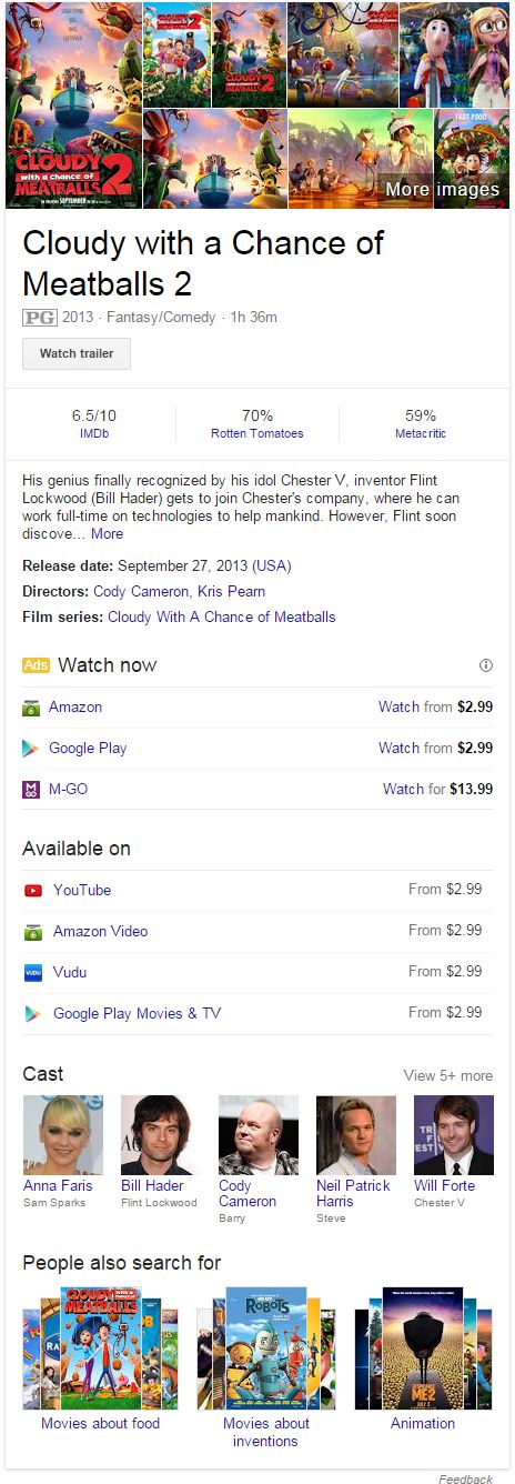 Knowledge Panels for movies that are available to watch online may display "Watch now" ads to services such as Google Play, Amazon, etc. These are currently labeled with the AdWords [Ads] marker.