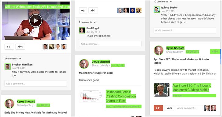 - If a post is reshared, it can accumulate internal links from the Google+ platform, all with relevant anchor text.