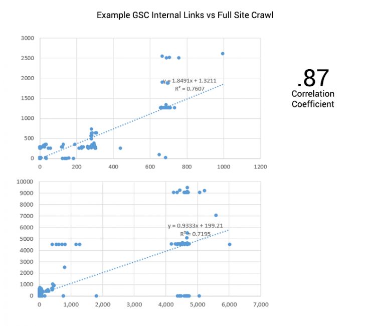 Testing this metric was fairly straightforward. We took the internal links numbers provided by GSC and compared them to full site crawls. We could then determine whether Google's crawl was fairly representative of the actual site.