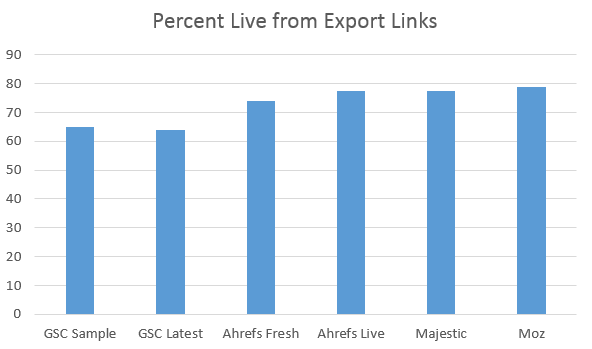 I do want to be clear and upfront about Moz's performance in this particular test. Because Moz has a smaller total index, it is likely we only surface higher-quality, long-lasting links. Our out-performing Majestic and Ahrefs by just a couple of percentage points is likely a side effect of index size and not reflective of a substantial difference. However, the several percentage points which separate GSC from all 3 link indexes cannot be ignored. In terms of external validity — that is to say, how well this data reflects what is actually happening on the web — GSC is out-performed by third-party indexes.