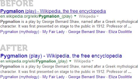 Let's start with a pretty basic search result, a query for [pygmalion]. Here's the before and after: