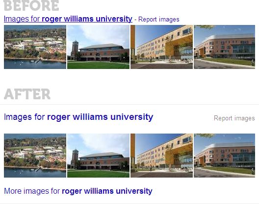 This is what the new image vertical results look like. The query is [roger williams university]: