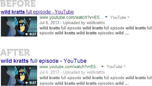 In 2014, video results are really more of an enhancement than an actual vertical. Here's a quick before and after for the query [wild kratts]: