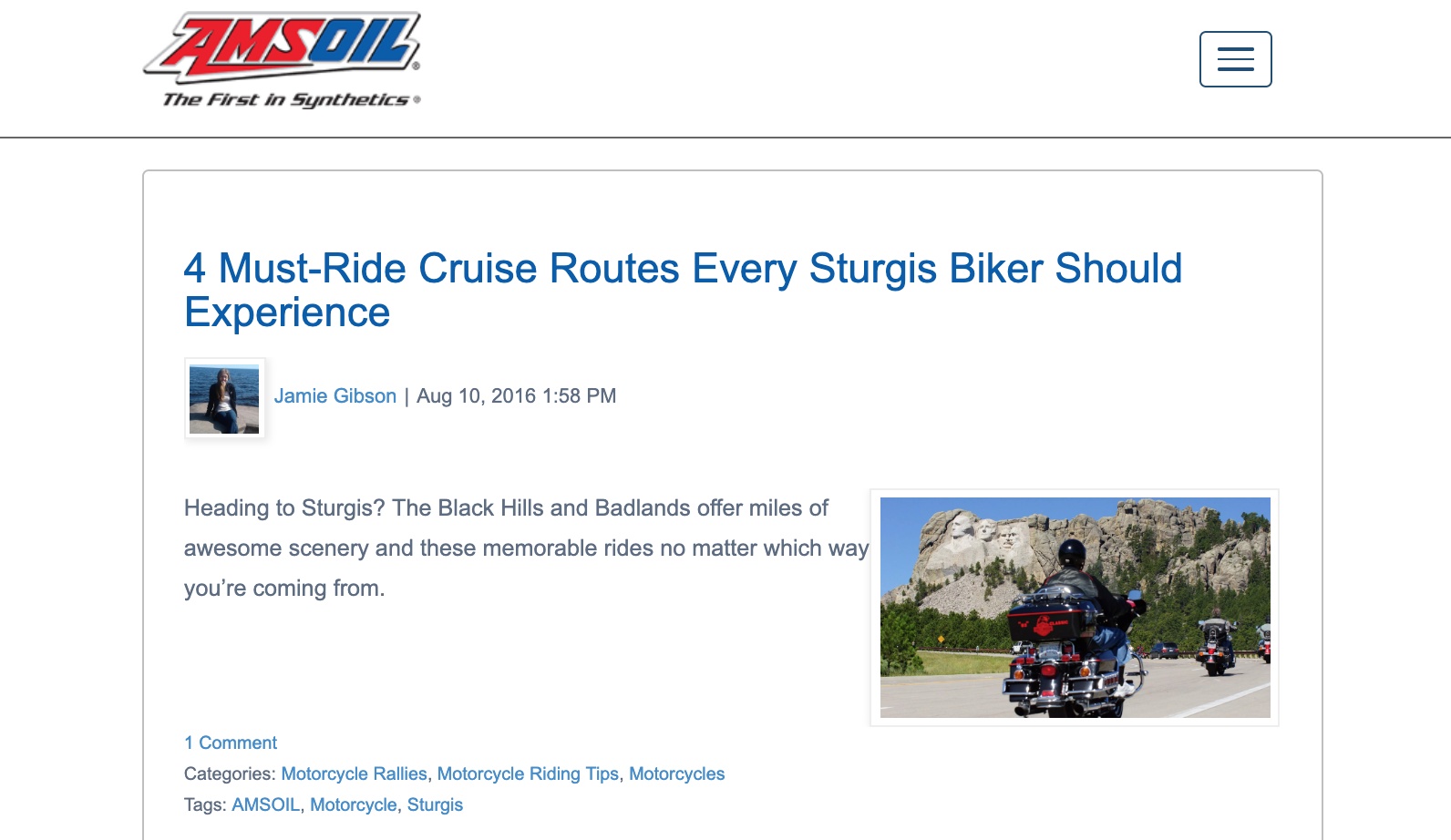 One of the events we sponsored was the Sturgis Rally. In this case, the post we created was purely for our social media and events support. Luckily, the rally promoted it, which brought an influx of their fans to our blog. An audience we were targeting with our event sponsorship, because they were likely to know and care about which brand of oil they used on their bikes.