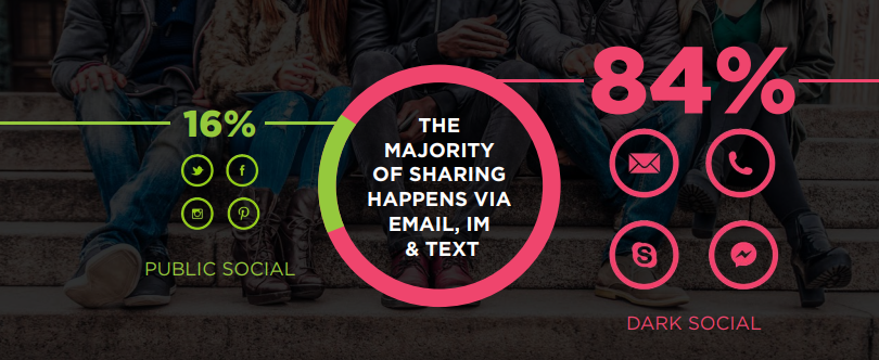 The term “dark social” was first coined back in 2012 by Alexis Madrigal in an article for The Atlantic. Essentially it refers to methods of social sharing which cannot easily be attributed to a particular source, like email, instant messaging, Skype, WhatsApp, and Facebook Messenger.