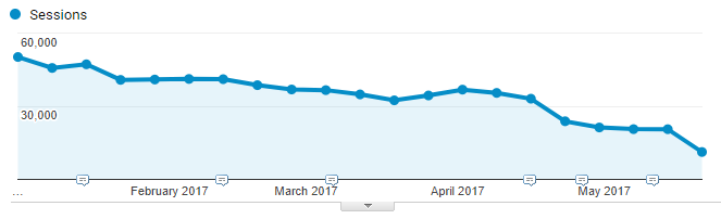 Adhere to these principles, and it’s often possible to achieve a dramatic reduction in the level of direct traffic reported in Analytics. The following example involved an HTTPS migration, GTM migration (as part of an Analytics review), and an overhaul of internal campaign tracking processes over the course of about 6 months:
