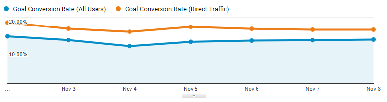 For reasons we’ve already discussed, traffic from bookmarks and dark social is an enormously valuable segment to analyze. These are likely to be some of your most loyal and engaged users, and it’s not uncommon to see a notably higher conversion rate for a clean direct channel compared to the site average. You should make the effort to get to know them.