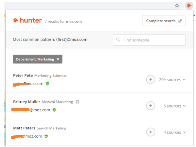 Go to the site which you are thinking about sending an email to, click on the extension in the top right corner of your screen, and Hunter, well, hunts.