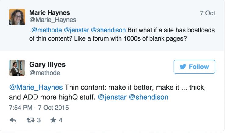 This is where things can get a little bit tricky. Recently, Google employee Gary Illyes caused a stir when he stated that Google doesn’t recommend removing thin content but rather, beefing up your site to make it “thick” and full of value.