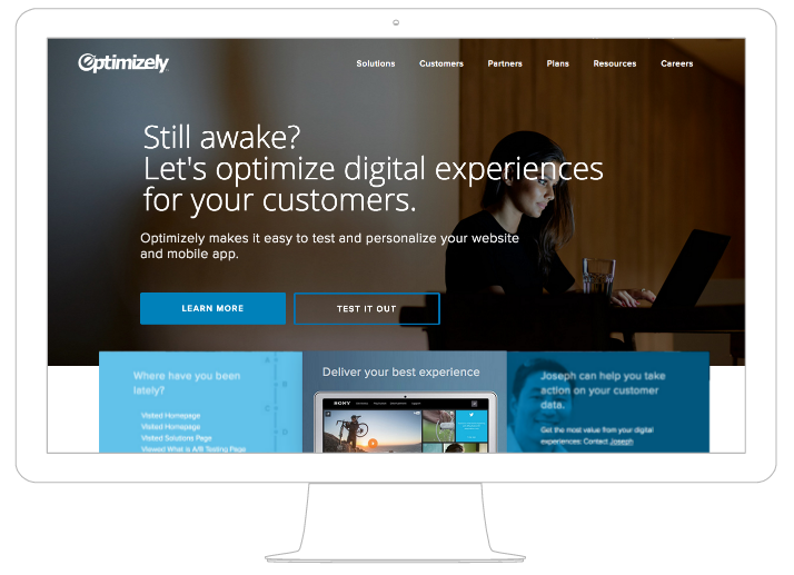 Homepage personalized for visitors browsing optimizely.com late night. |