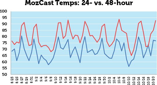 The purpose of a tool like MozCast, in my opinion, is to answer the question “Was it just me?” We’re not trying to tell you if you were hit by an update – we’re trying to help you determine if, when you are hit, you’re the exception or the rule.
