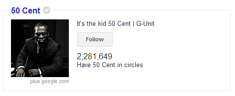 50 Cent has a verified Google+ account and is pretty ahead of the curve as not many other big names in the rap world are on the network. Yet.
