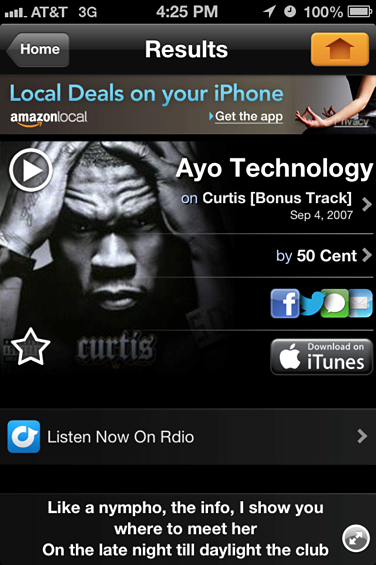 By starting the app while a song is playing, it not only shows you the song information, but also the specific line of the song and it continues to move through the lyrics as the song is progressing. Unreal.