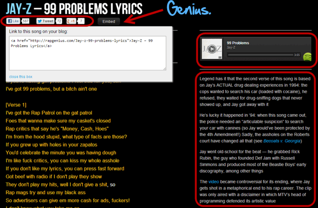 I think the guys at Rap Genius understand the importance of linkable content and how that ties into their site’s Domain Authority.