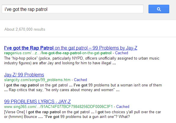 What’s interesting about this approach, whether intended or not, is that it helps them capture long-tail traffic for some seriously random queries. Ever remember a hot line to a song, but not remember the song name?