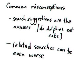 But some common misconceptions they found some kids thought that the search suggestions, so the drop-down as you start typing, were the answers, which is bit problematic. I mean we've all seen kind of racist or hateful drop-downs in those search queries. But in this particular case, it was mainly just funny. It would end up with things like you start asking "what do dolphins eat," and it would be like "Do dolphins eat cats" was one of the search suggestions.