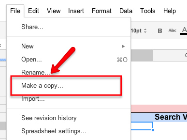3. Go to File and make a copy of the sheet.