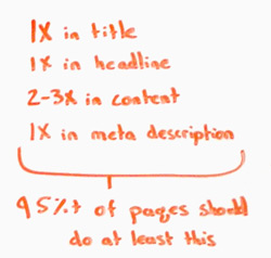 I'm going to say two to three times in content. That is a very rough rule. Generally speaking, if you don't have the keyword at least a couple of times in the content of the page, unless you have an extremely visual page or an interactive page with almost no content, which maybe that would fall in the 5%, you should definitely be hitting that.