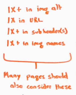 So these three big considerations lead us to some quick rules of thumb. I'm going to say that for 95% of pages out there -- not every single one, there are always going to be a few exceptions --but for 95% of the pages out there, you should do at least these things. I'll put nice little boxes here to help out.