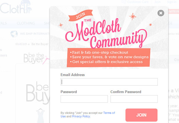 This is how ModCloth invites its users to 'join' the 'community' instead of just saying 'register'. Please note that when customers registers on your store, he/she consents to the collection of their personal information. It’s then up to you how you use the information wisely to enrich customer’s experience. So when a user registers to your store, he must actually be treated as a member and not just a user.