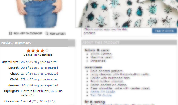 The objective should be to foster a relationship of trust with the customer. ASOS also offers this great feature in which shows summary of all the product reviews as below.