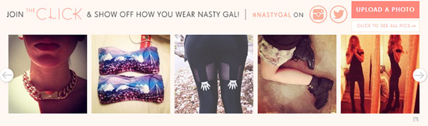 Olapic is a great tool to show user generated photos on your store. With this tool, you can collect, curate and display high quality photos of your product that your customers are already posting on Facebook, Instagram, Twitter and more. It's used by the likes of Nastygal to allow their customers to click their own pictures wearing the dress they just bought. It's a great way to engage with your existing and potential customers.