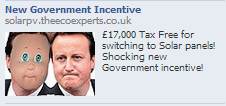 The British Prime Minister is used in a surreal picture to attract the eye. He is a polarising politician and many people would have a gut level reaction to his image. (You could imagine a Texas gun shop using images of Barack Obama to the same effect).