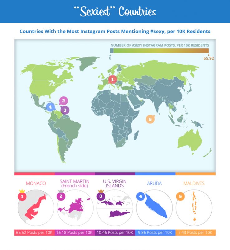 For example, we produced a campaign for a client in which we looked at Instagram posts with the hashtag #sexy and a geolocation. From this, we were able to glean the “sexiest” countries in the world as well as U.S. states.