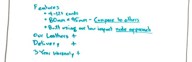- Help people get really comfortable and build trust. So if I scroll down here, what I'm seeing is more photos about how the wallet is made, how people are using it. They call this the nude approach, which cleverly titled, I'm sure it makes for a lot of clicks. The nude approach to building a wallet, why the leather is so slender, why it adds so little weight and depth, why it lasts so long, all these kinds of things.